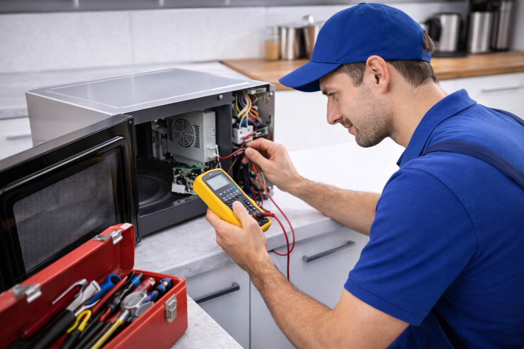We repair appliances safely using proper tools and genuine spare parts.
